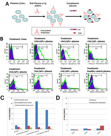 - Navratil, J.S.; Manzi, S.; Kao, A.H.; Krishnaswami, S.; Liu, C.C.; Ruffing, M.J.; Shaw, P.S.; Nilson, A.C.; Dryden, E.R.; Johnson, J.J.; et al. Platelet C4d is highly specific for systemic lupus erythematosus. Arthritis Rheum. 2006, 54, 670–674. [Google Scholar] [CrossRef] [PubMed]