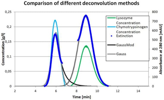 - Dismer, F.; Hansen, S.; Oelmeier, S.A.; Hubbuch, J. Accurate retention time determination of co-eluting proteins in analytical chromatography by means of spectral data. Biotechnol. Bioeng. 2013, 110, 683–693. [Google Scholar] [CrossRef] [PubMed]