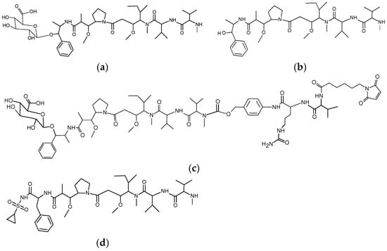 - Doronina, S.O.; Toki, B.E.; Torgov, M.Y.; Mendelsohn, B.A.; Cerveny, C.G.; Chace, D.F.; DeBlanc, R.L.; Gearing, R.P.; Bovee, T.D.; Siegall, C.B.; et al. Development of potent monoclonal antibody auristatin conjugates for cancer therapy. Nat. Biotechnol. 2003, 21, 778–784. [Google Scholar] [CrossRef] [PubMed]