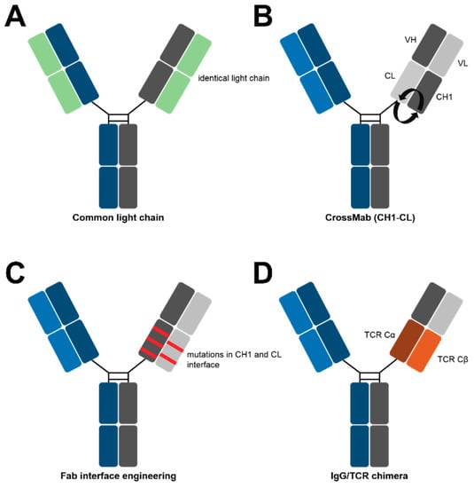 Other technologies are based on an engineered disulfide bond in one CH1-CL interface [], which includes computational and rational interface engineering [,].