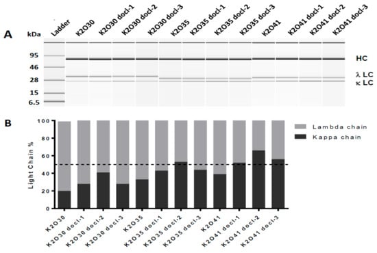 - Bhoskar, P.; Belongia, B.; Smith, R.; Yoon, S.; Carter, T.; Xu, J. Free light chain content in culture media reflects recombinant monoclonal antibody productivity and quality. Biotechnol. Prog. 2013, 29, 1131–1139. [Google Scholar] [CrossRef] [PubMed]