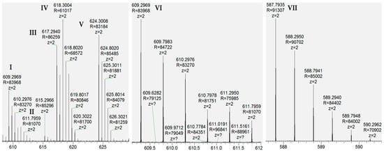 - Valkenborg, D.; Jansen, I.; Burzykowski, T. A model-based method for the prediction of the isotopic distribution of peptides. J. Am. Soc. Mass Spectrom. 2008, 19, 703–712. [Google Scholar] [CrossRef] [PubMed]