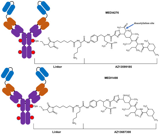 15]. Deacetylation of AZ13599185 can occur either while conjugated to the antibody, resulting in the deacetylated form of MEDI4276 (designated as MEDI1498) or after it has been released from the antibody. Hence, it is essential to monitor the catabolism of MEDI4276 by measuring the concentrations of MEDI1498, AZ13599185 and AZ13687308 (AZ7308) during PK assessment of MEDI4276 in clinical samples.