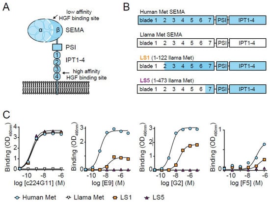 - Gherardi, E.; Youles, M.E.; Miguel, R.N.; Blundell, T.L.; Iamele, L.; Gough, J.; Bandyopadhyay, A.; Hartmann, G.; Butler, P.J.G. Functional map and domain structure of MET, the product of the c-met protooncogene and receptor for hepatocyte growth factor/scatter factor. Proc. Natl. Acad. Sci. USA 2003, 100, 12039–12044. [Google Scholar] [CrossRef] [PubMed]