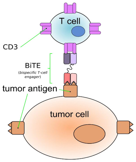 - Baeuerle, P.A.; Reinhardt, C. Bispecific t-cell engaging antibodies for cancer therapy. Cancer Res. 2009, 69, 4941–4944. [Google Scholar] [CrossRef]