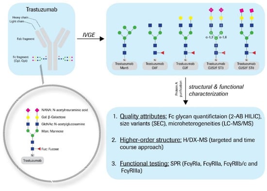 - Thomann, M.; Schlothauer, T.; Dashivets, T.; Malik, S.; Avenal, C.; Bulau, P.; Ruger, P.; Reusch, D. In vitro glycoengineering of igg1 and its effect on fc receptor binding and adcc activity. PLoS ONE 2015, 10, e0134949. [Google Scholar] [CrossRef] [PubMed]