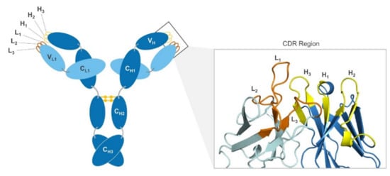 - Dunbar, J.; Krawczyk, K.; Leem, J.; Baker, T.; Fuchs, A.; Georges, G.; Shi, J.; Deane, C.M. SAbDab: The structural antibody database. Nucleic Acids Res. 2013, 42, D1140–D1146. [Google Scholar] [CrossRef]