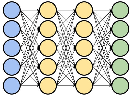 Additionally, recurrent neural networks—often used in language processing tasks—can be utilized by framing sequence data as a language with a unique vocabulary []. Recurrent neural networks typically use an array-like structure of layers where layer inputs are either direct input values, such as the letters in a word, or hidden inputs, which are outputs from a previous layer in the array. The hidden nodes allow context to propagate along the array and subsequent input values to be evaluated within that context.