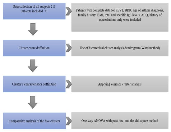 - Moore, W.C.; Meyers, D.A.; Wenzel, S.E.; Teague, W.G.; Li, H.; Li, X.; D’Agostino, R.; Castro, M.; Curran-Everett, D.; Fitzpatrick, A.M.; et al. Identification of Asthma Phenotypes Using Cluster Analysis in the Severe Asthma Research Program. Am. J. Respir. Crit. Care Med. 2010, 181, 315–323. [Google Scholar] [CrossRef]