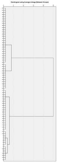 To determine whether patients in a cluster group are the same or different, Ward’s method was applied. The number of likely clusters was determined by visual inspection of the dendrogram (