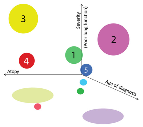 When we gathered all three aspects of atopy level, lung function and severity, we found that children with the most affected lung function were in those two clusters with poor control, but the ones with earlier diagnosis have more atopic features compared to the ones with later diagnosis (