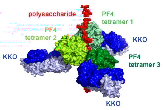 - Huynh, A.; Arnold, D.M.; Kelton, J.G.; Smith, J.W.; Horsewood, P.; Clare, R.; Guarne, A.; Nazy, I. Characterization of platelet factor 4 amino acids that bind pathogenic antibodies in heparin-induced thrombocytopenia. J. Thromb. Haemost. 2019, 17, 389–399. [Google Scholar] [CrossRef] [PubMed]