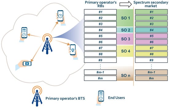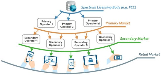 The development of human society is connected with the rapid growth of data, which doubles every two years according to a recent study of IDC iView "Extracting Value from Chaos" sponsored by EMC Corporation (Hopkinton, MA, U.S.) []. This fact increases the demand for growing data volume transfers as a result of the increasing interconnectivity in society and the larger number of autonomous intelligent devices with communication abilities. Currently, telecommunication services cover between 3 and 6 percent of the gross domestic product of national economies and have become an indispensable factor of further development. The importance of the telecommunication sector is evident from the oft-declared empirical evidence on the causal relationship between telecommunication services and economic growth (e.g., by [,,]). In contrast, the traditional command-and-control spectrum management based on exclusive access to the frequency spectrum by licensed operators becomes a serious limiting factor []. Licensed operators are not able to permanently utilize the entire frequency band, leading to temporally inefficient spectrum utilization. The solution to the problem is Dynamic Spectrum Access (DSA), which is a set of innovative spectrum management schemes that allows for more efficient spectrum utilization based on Cognitive Radio (CR) technology. Hossain et al. [] describe the economic model behind the DSA as follows. Primary operators (POs) participate in auctions on the primary market to lease the frequency spectra licenses needed to provide the primary service. Then, POs that seek to dispose of unused parts of the licensed spectrum enter a spectrum secondary market and lease them temporarily to secondary operators (SOs) through various trading schemes that merge the technological and economic aspects of the topic (We note that our notion of “primary” and “secondary” spectrum providers must be distinguished from similar terms often associated with users themselves (in our case, end users) []). The chosen trading scheme should take into account both the contradictory goals of independent users and the existence of the artificial intelligence disseminated across the entire network []. Therefore, DSA technology enables an increase in spectrum utilization and, at the same time, improves the network’s economy, which satisfies the inflow of the additional financial sources needed to expand and modernize the existing network.