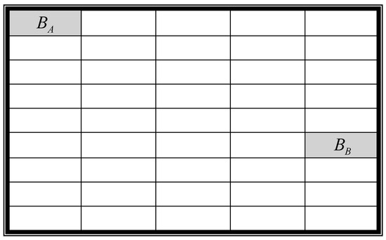 The proposed scheme divides a cover image into several -sized blocks. Each block randomly chooses another block as a block pair. Let (BA, BB) be the block pair. Figure 7 shows the diagram of the image blocks of the proposed scheme. The proposed scheme generates an authentication watermark for the block pair (BA, BB) and embeds the code into the block pair.