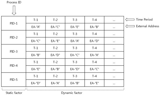 If an insider analyzes the processes using PID and strace (the system call debugging utility in Linux) instead of analyzing the dynamic factor, the insider may associate the PID with a legitimate process or a decoy process. If the PID of the legitimate process is exposed to the insider by means of a process analysis, the insider will be able to confirm the external address related to the PID as the moving server. Moreover, if the insider who analyzes the dynamic factor detects the moving server even once in a certain time period, from the next period the insider will be assured that the external address of the process that was associated with the moving server during the previous period is the address of the moving server.