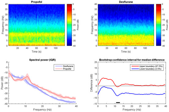 - Akeju, O.; Westover, M.B.; Pavone, K.J.; Sampson, A.L.; Hartnack, K.E.; Brown, E.N.; Purdon, P.L. Effects of sevoflurane and propofol on frontal electroencephalogram power and coherence. J. Am. Soc. Anesthesiol. 2014, 121, 990–998. [Google Scholar] [CrossRef] [PubMed]