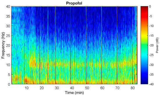Electroencephalogram (EEG), as measured from electrical potential in cortex, is now growing to be employed to relate drug-specific oscillations to clinically desired states [1]. Part of the reason might be that the general anesthesia is induced by anesthetics acting on the spinal cord, stem, and cortex in brain [11,12]. EEG patterns might provide useful relevant inspiration [13]. It is known that central nervous relies on the spike or action potential transmission and reception by neurons to process the brain information [14]. Subcortical regions, such as the thalamus, produce much smaller potentials that are more difficult to detect. However, scalp EEG patterns reflect the states of both cortical and subcortical structures because cortical and subcortical structures are richly interconnected [15]. EEG is the most pervasively noninvasive signal that reflects the brain communication and states. These neurophysiological studies in adults have led to the idea of using the EEG and its spectrogram as an alternative to using EEG-derived indices to monitor the brain states of adults receiving general anesthesia or sedation circumstance [4,16]. As for the spectral analysis method of nonlinear and nonstationary signals, except the traditional periodogram, there are some newly developed ones, like empirical mode decompositions (EMD) [17], which is computed through the iterative extraction of intrinsic mode function and followed by Hilbert transform to compute the spectrum. In addition, multicomponent amplitude modulation-frequency modulation (AM–FM) representation is based on extraction of the iterated application of the Hilbert transform derived Gabor signal [18], and then experiences the exact computation of the amplitude and associated phase. It has been frequently applied to simulated synthetic signal and practical speech data in comparison with the state of the art methods [18], and electromyography (EMG) [19], which is used to evaluate muscle fatigue, and even mystery curves [20] or EEG, and so forth. Problems with these EEG-based indices exist although with the simplicity and early successes in reducing the amount of anesthetic agents administered. In practice, these indices can vary substantially from clinical assessments of consciousness [21]. For example, two main indices derived from EEG are the Bispectral index (BIS) (Aspect Medical Systems, Newton, MA, USA) [22] and Entropy family (GE Healthcare, Helsinki, Finland) [23] have been used as index of depth of anesthesia somehow although with some deficiencies in certain and show limited efficacy. Besides, it is not sufficient to assess the anesthesia status form autonomic and motor responses alone (i.e., verbal or stimuli response), since these responses may reflect spinal and brainstem actions, rather than specific cortical processing of nociceptive stimuli, which is a prerequisite for the experience of pain. Therefore, EEG recordings obtained during routine clinical care, and relate neurophysiological findings to the behavioral state encountered and putative neural circuit mechanisms. It has been found that this approach is effective for providing substantial insights into the mechanisms of anesthetic action [21,24].