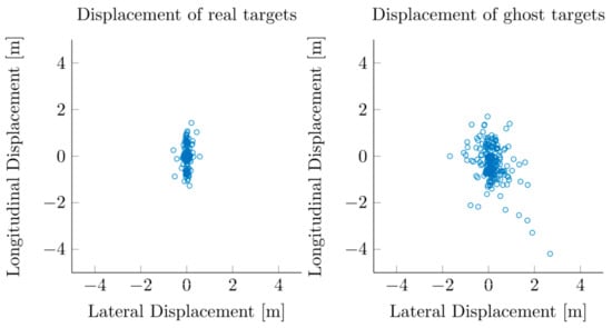 Displacement distribution of actual targets (left) and ghost targets (right).