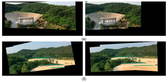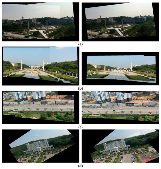 - Gao, J.; Kim, S.J.; Brown, M.S. Constructing Image Panoramas using Dual-Homography Warping. In Proceedings of the IEEE Conference on Computer Vision and Pattern Recognition (CVPR), Colorado Springs, CO, USA, 20–25 June 2011; pp. 49–56. [Google Scholar]