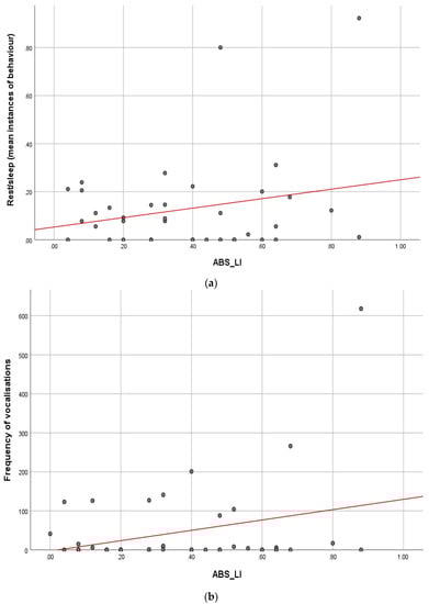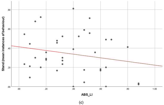 Association between ABS_LI and rest/sleep (a), vocalization (b) and standing (c). ABS_LI = 0 weak laterality; ABS_LI = 1 strong laterality.