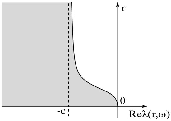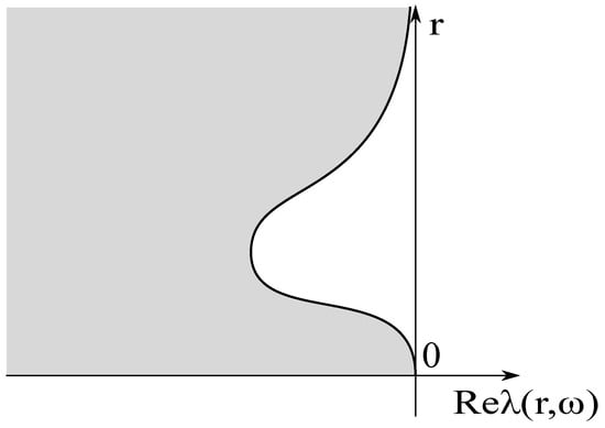 Remark that the vertical axis and the horizontal axis denote r and for (2), respectively, in Figure 1, Figure 2 and Figure 3 appeared in Section 4. Under the strict dissipativity for the system (1), the real parts of the eigenvalues for (2) are located in the gray region in Figure 1 or Figure 2.