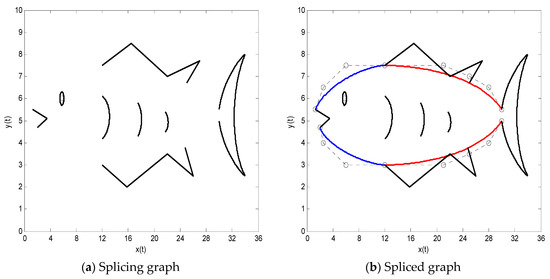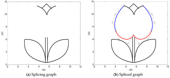 (1) We can modify the local shape of the composite curve by changing the shape parameters λ j , 1 ( j = 1 , 2 , , [ n / 2 ] + 1 ) , μ j , 1 ( j = 3 , 4 , , [ n / 2 ] + 1 ) or λ j ˜ , 2 ( j ˜ = 3 , 4 , , [ m / 2 ] + 1 ) , μ j ˜ , 2 ( j ˜ = 1 , 2 , , [ m / 2 ] + 1 ) .