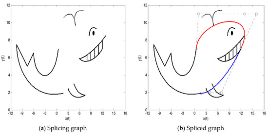 According to Equation (2), we suppose the two splicing SG-Bézier curves that need to be smooth joining are defined as follows: