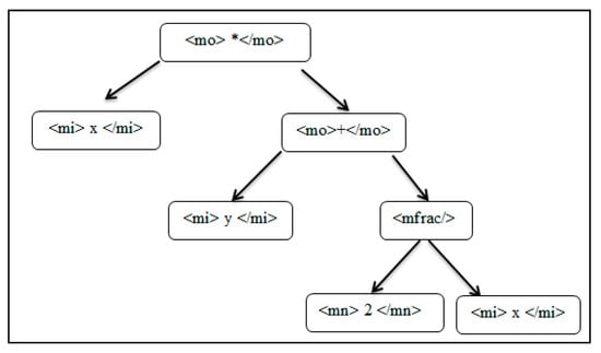 The structure representation tree can be directly extracted from the MathML code (Figure 4). This representation loses numerous useful semantic contents in searching for mathematical formulae.