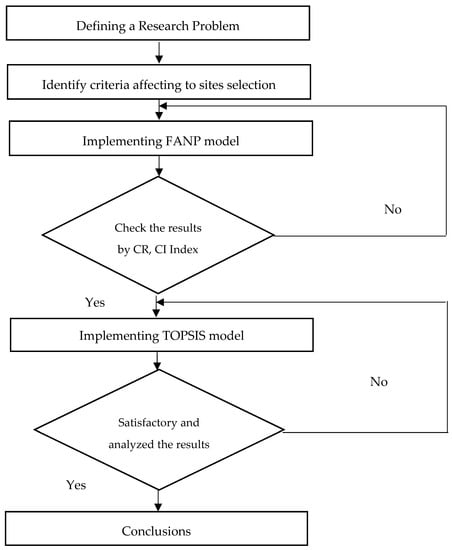 In this research, the authors developed a hybrid fuzzy ANP and TOPSIS model for site selection for NPP construction in Vietnam. There are three stages in this work, as shown in Figure 1: