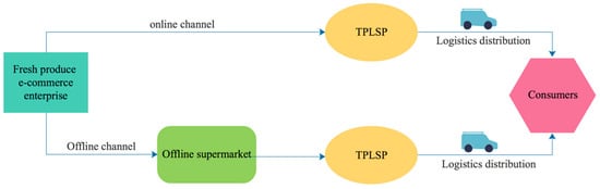 With the rapid development of e-commerce, in recent decades, the marketing modes of fresh produce supply chains have been changing, and the retail enterprises are increasingly adopting the sales mode of a dual-channel supply chain, in order to promote the sales of their products []. At the same time, the change of the consumer shopping mode also makes it possible for the coexistence of an online sales channel, alongside the traditional offline sales channel. Fresh produce dual-channel supply chains are playing an increasingly prominent role in people’s daily lives. In the operation and management of a dual-channel, three-layered supply chain, fresh produce is sold through online and offline channels and delivered through third-party logistics. The method by which to make a greenness degree decision, a freshness-keeping effort level decision, and a dual-channel price decision, is related to various aspects of economic, environmental, and social performance.