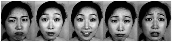 - Lyons, M.; Akamatsu, S.; Kamachi, M.; Gyoba, J. Coding facial expressions with Gabor wavelets. In Proceedings of the Third IEEE International Conference on Automatic Face and Gesture Recognition, Nara, Japan, 14–16 April 1998; pp. 200–205. [Google Scholar]