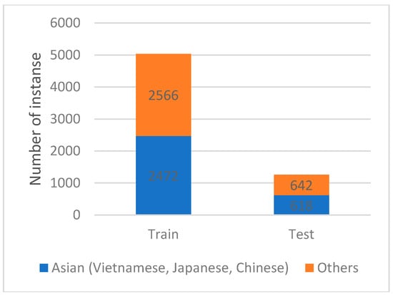 Number of Asian people (including Vietnamese, Japanese, and Chinese) and Others in the training and testing datasets.