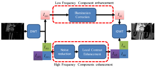 - Łoza, A.; Bull, D.R.; Hill, P.R.; Achim, M.A. Automatic contrast enhancement of low-light images based on local statistics of wavelet coefficients. Digit. Signal Process. 2013, 23, 1856–1866. [Google Scholar] [CrossRef]
