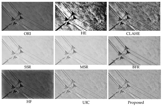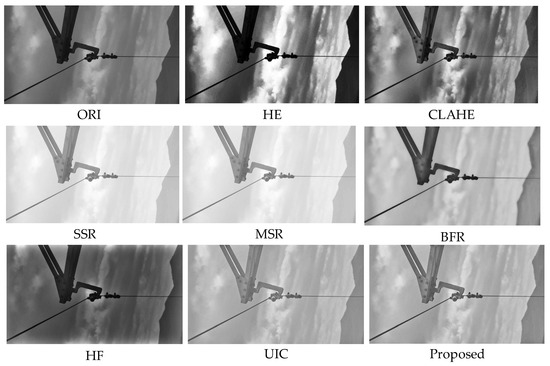 | Algorithm | HE | CLAHE | SSR | MSR | BFR | HF | UIC | Proposed |