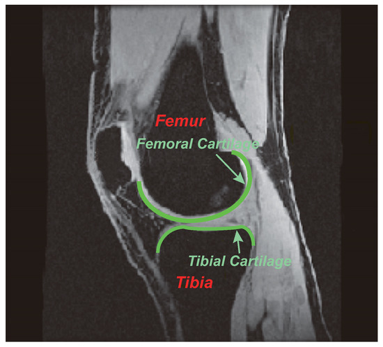 - Hardy, P.A.; Nammalwar, P.; Kuo, S. Measuring the thickness of articular cartilage from MR images. J. Magn. Resonan. Imaging 2001, 13, 120–126. [Google Scholar] [CrossRef]