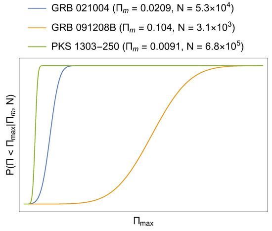 where is the modified Bessel function of order 1. For each polarization measurement , we determine N by numerically solving for N assuming . This allows us to calculate the cumulative probability by numeric integration of Equation (38):