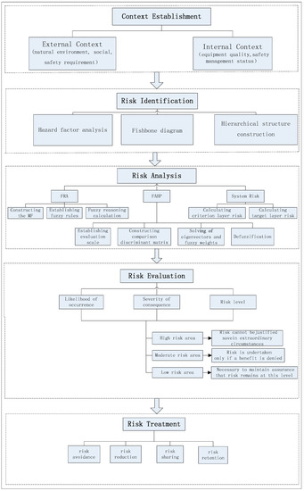 This stage mainly states the internal and external challenges faced by the operation of special line shunting. These challenges include cultural, social, legal, and regulatory factors, as well as the nature environment, safety requirements, equipment quality, and so on [12]. The context establishment assists in identifying the natures and types of risk causes, determining disaster-causing factors, and setting the scope and criteria for risk assessment.