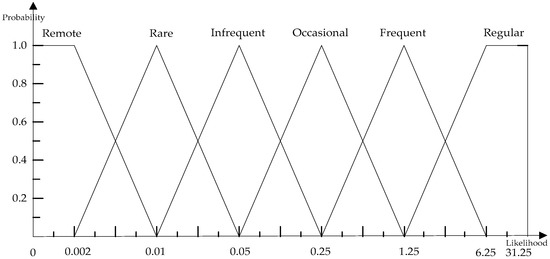 According to “Railway applications—The specification and demonstration of Reliability, Availability, Maintainability and Safety”, we can obtain the likelihood of occurrence MF combined with FRA, as specified in Table 1 and Figure 2.
