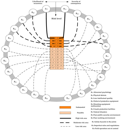 Railway special lines are branch lines that are managed by enterprises or other units that connect to national railway lines [1,2]. Special line shunting safety involves many kinds of work and multiple operation links, such as transportation, electric locomotives, maintenance, electric service and vehicles. The operation coordination degree is high and the dynamic control of safety risk is difficult; carelessness can cause collision, derailment, and other accidents [3]. Therefore, risk assessment of special line shunting should be examined to improve railway safety management.