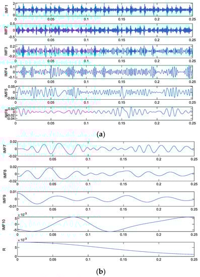 - Ricci, R.; Pennacchi, P. Diagnostics of gear faults based on EMD and automatic selection of intrinsic mode functions. Mech. Syst. Signal Process. 2011, 25, 821–838. [Google Scholar] [CrossRef]