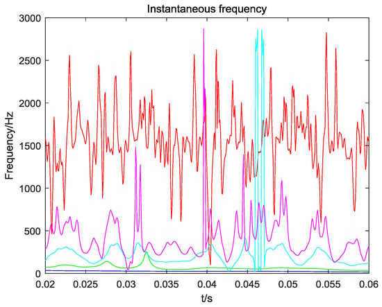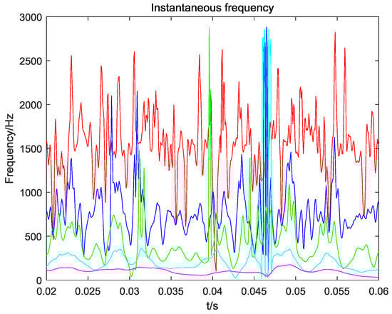 The instantaneous frequency distribution of the first six natural modal components obtained by EMD and wavelet decomposition is shown in Figure 8 and Figure 9. It can be known that the instantaneous frequency distribution of the first six natural modal components obtained by EMD decomposition has no obvious frequency crossover and aliasing. The instantaneous frequency distribution of the first six modal components obtained by wavelet decomposition has extremely obvious frequency crossover and aliasing. In other words, the EMD method better solves the pattern aliasing problem.