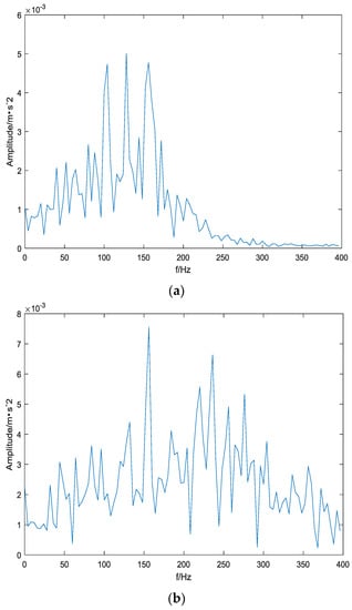 Partial modal component spectrum obtained by wavelet decomposition. (a) IMF5 component spectrum, (b) IMF6 component spectrum.
