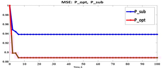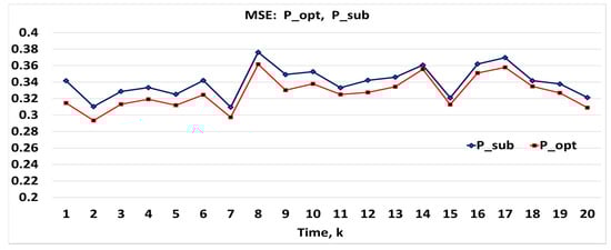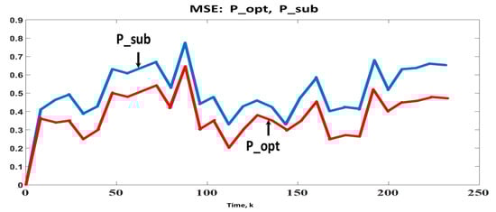 To study the behavior of the true MSEs, and set and To compare the MSEs, a Monte-Carlo simulation with 1000 runs was used. As shown in Figure 4, the optimal estimate demonstrates an improvement over the suboptimal estimate .