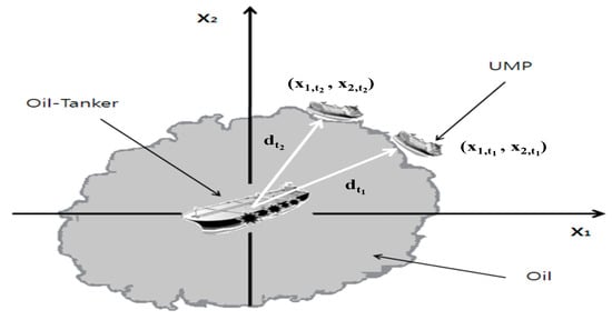To control the size of the surface, the UMP must compute the distance from the oil-tanker at every time instance represented by the NFS:
