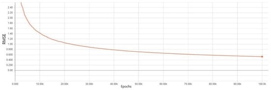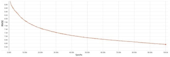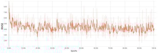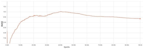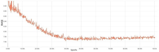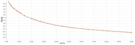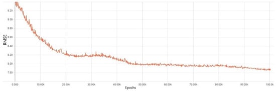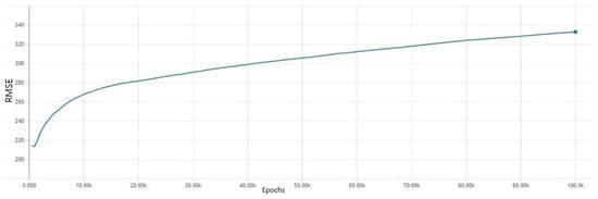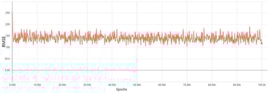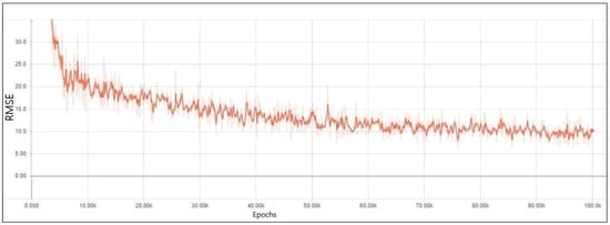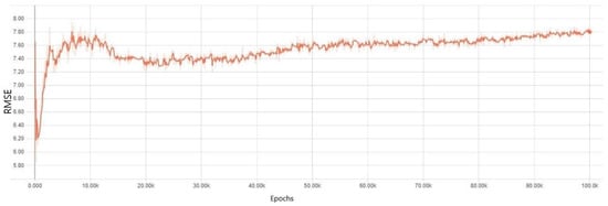 In the third step, a defined neural network model was trained using the original data where regularization methods were not applied. During training, the root mean square errors (RMSEs) were captured and the data were saved into a separate file. The RMSE value could be obtained using the following equation: