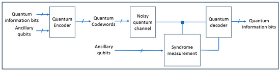 - Postol, M.S. A proposed quantum low density parity check code. arXiv, 2001; arXiv:quant-ph/010813. [Google Scholar]
