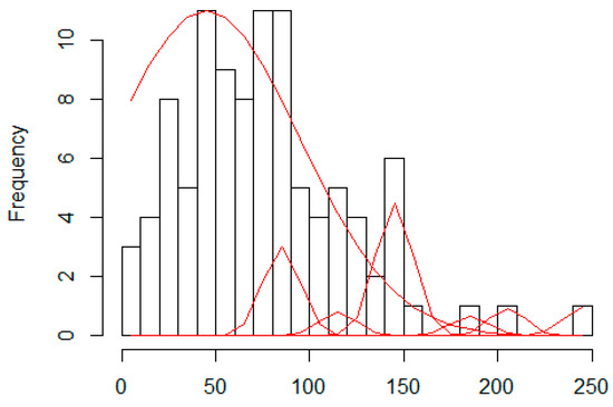 - Yang, X.; Kong, F.; Xu, W.; Liu, B. Gaussian mixture density modeling and decomposition with weighted likelihood. J. Men’s Health 2004, 5, 4245–4249. [Google Scholar]