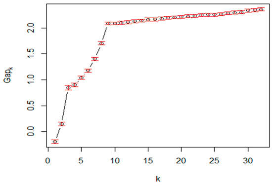 The second investigated method is the gap statistic method [55] Estimating the number of clusters in a data set via the gap statistics. The method calculates the goodness of clustering measure by the “gap” statistic.