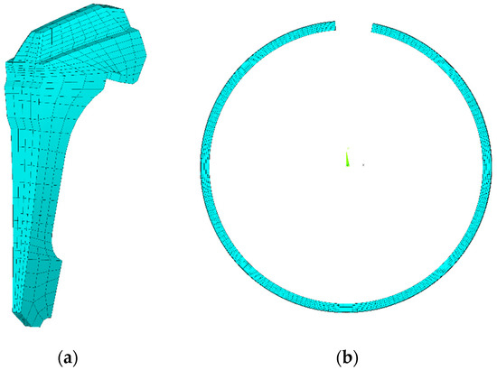Finite element model: (a) The gear (fundamental sector); (b) the ring damper.