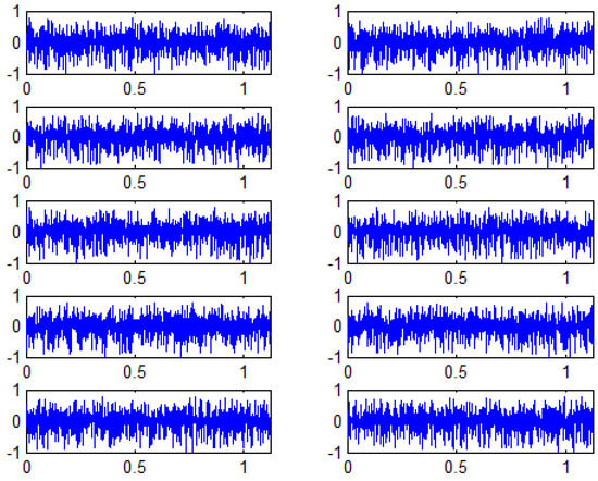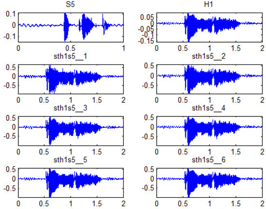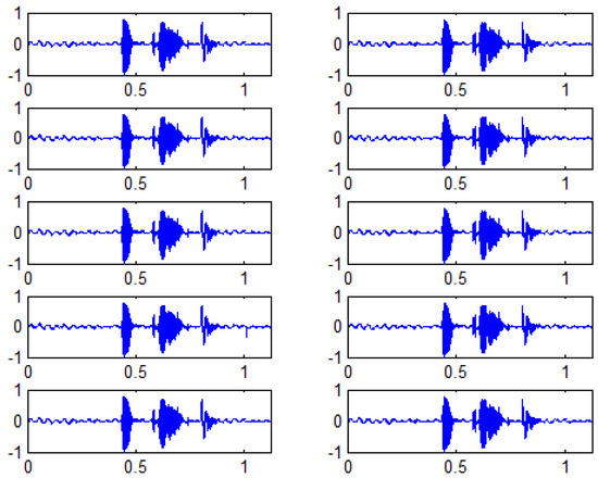 Prior to the analysis of consolidated results, some results of stego signals are shown for different values. Figure 3 shows a host signal, a secret signal, and the six stego signals obtained for the six values analysed.